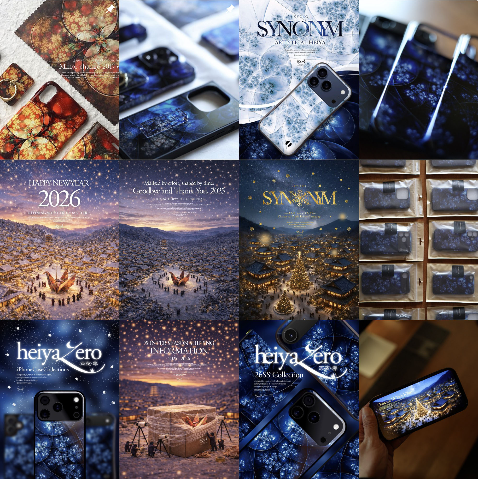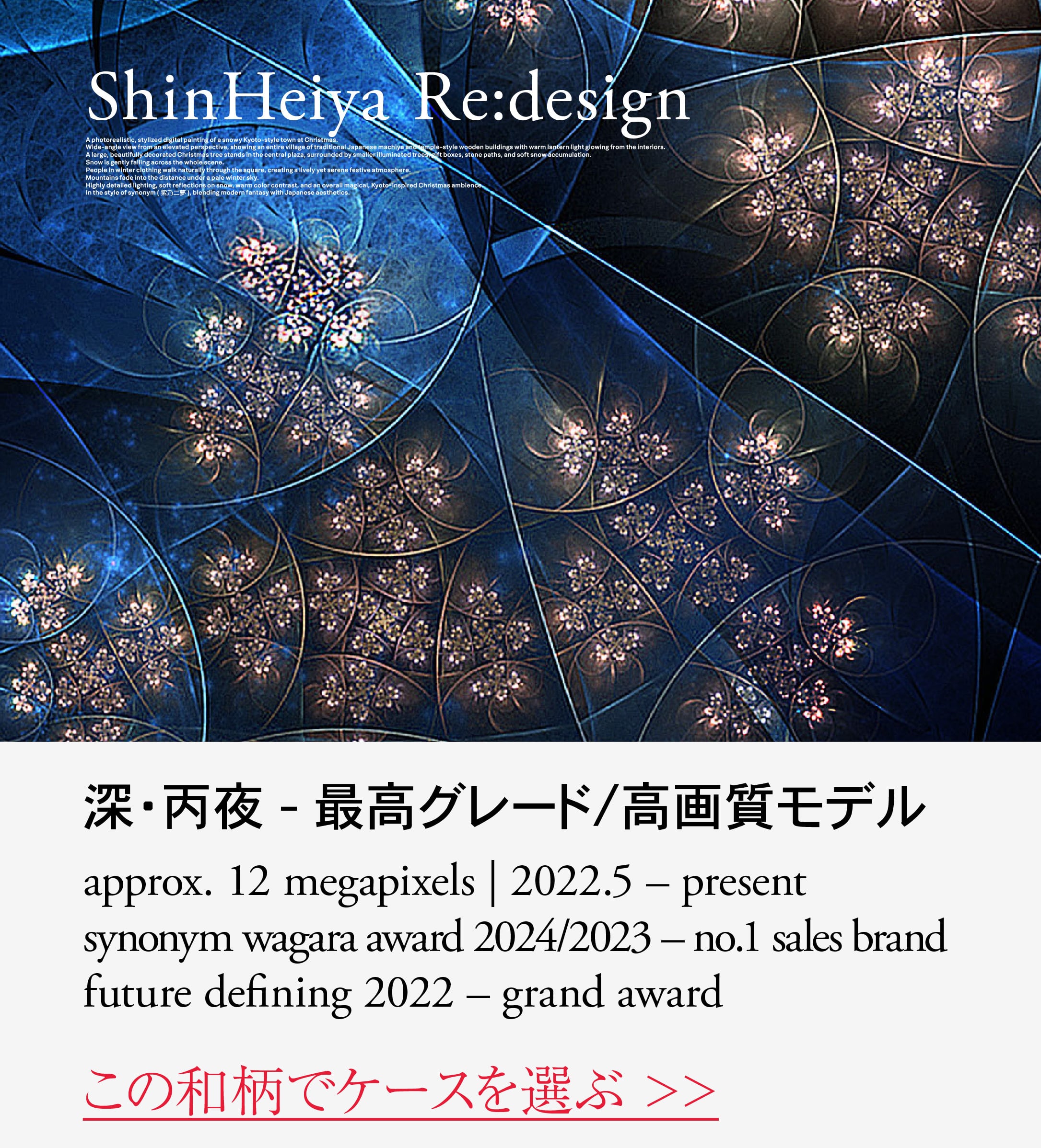 紫乃二夢の和柄は「和」を現代的に再構築した唯一無二の作品。桜や紅葉、夜空をモチーフに、繊細で緻密な構成が生む奥行きのある美しさ。手にするたび、新たな表情を楽しめる作品です。