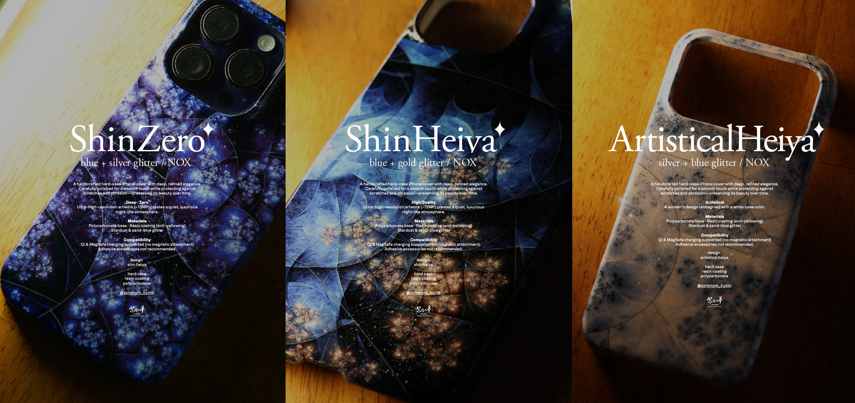 紫乃二夢 オリジナル コーティングiPhoneケース。 NOX(夜)を閉じ込めた、 漆のような特別感。 光を受けて静かに艶めき、 目を奪う華やかさへ。 3個に1個しか完成しない 唯一無二の手作り和柄ケース。