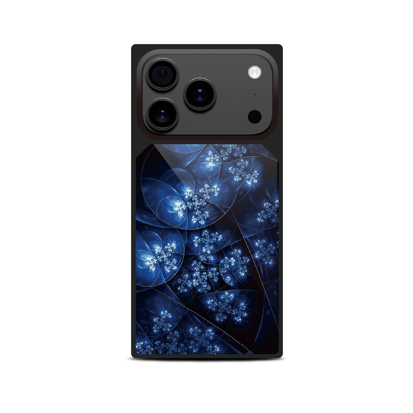 丙夜・零(へいや・ぜろ)の和風 四角型 強化ガラスiPhoneケース。夜空に沈む藍、水面に揺れる桜の静寂。紫乃二夢の人気和柄「丙夜」が、青を極めた姿に進化。AGC製9H強化ガラスを使用した、“作品としてのスマホケース”。
