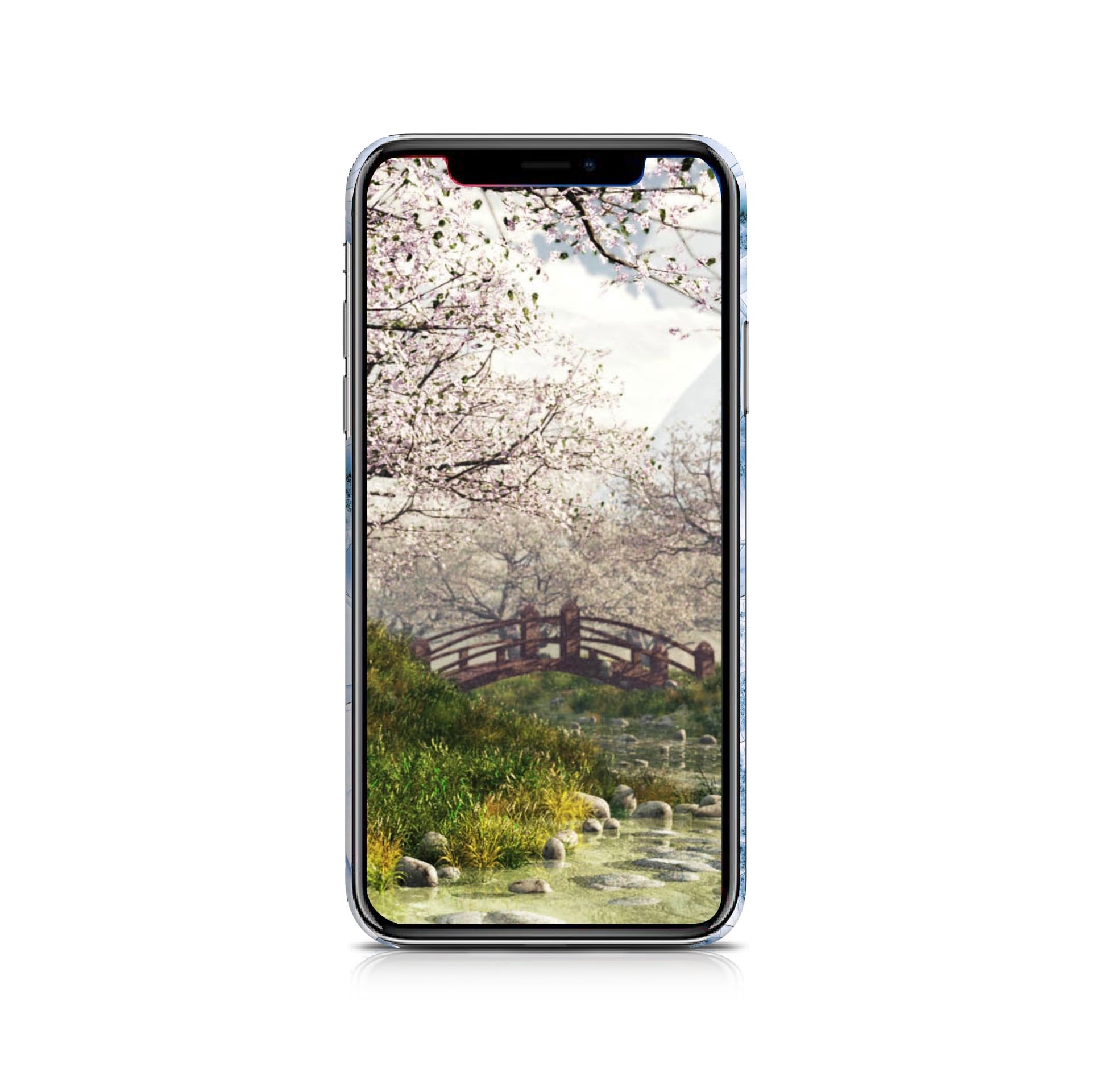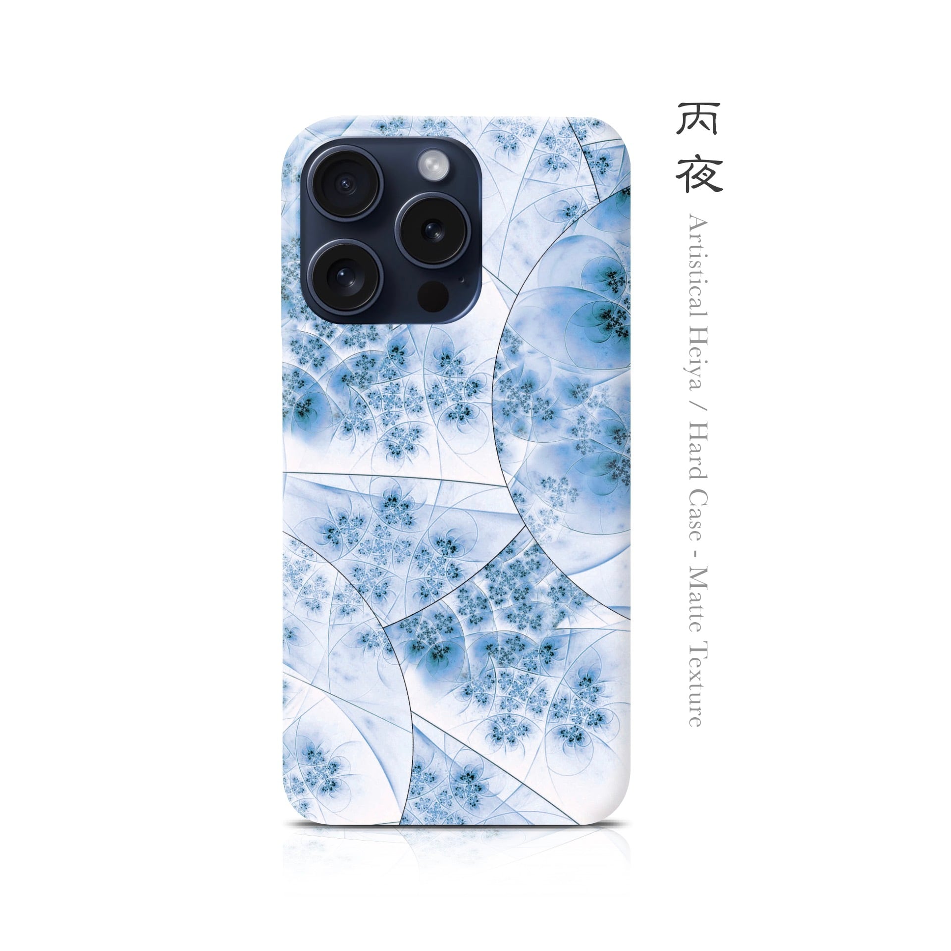 丙夜のマットハードケースです。夜空に沈む藍、水面に揺れる桜の静寂。ホワイトカラーをベースとしつつもその清楚さが全面に出たアーティスティカルな作品へ進化。