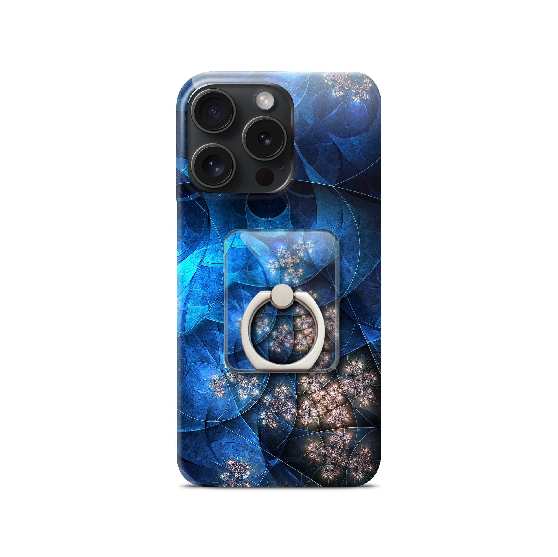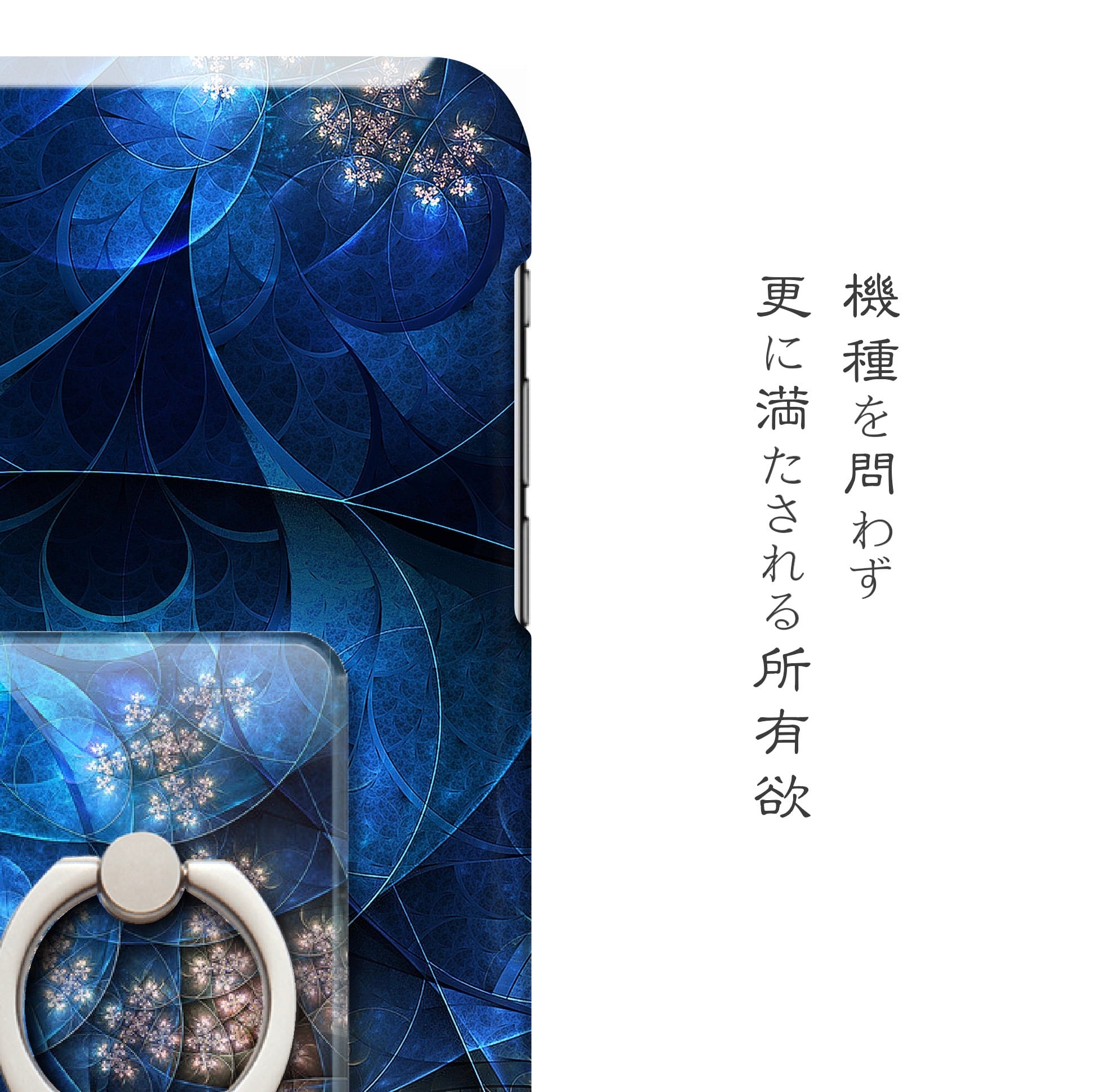 深・丙夜(しん・へいや)モデルのオリジナル和柄スマホリングです。夜空に沈む藍、水面に揺れる桜の静寂。紫乃二夢の人気和柄「丙夜」が、青を極めた姿に進化。