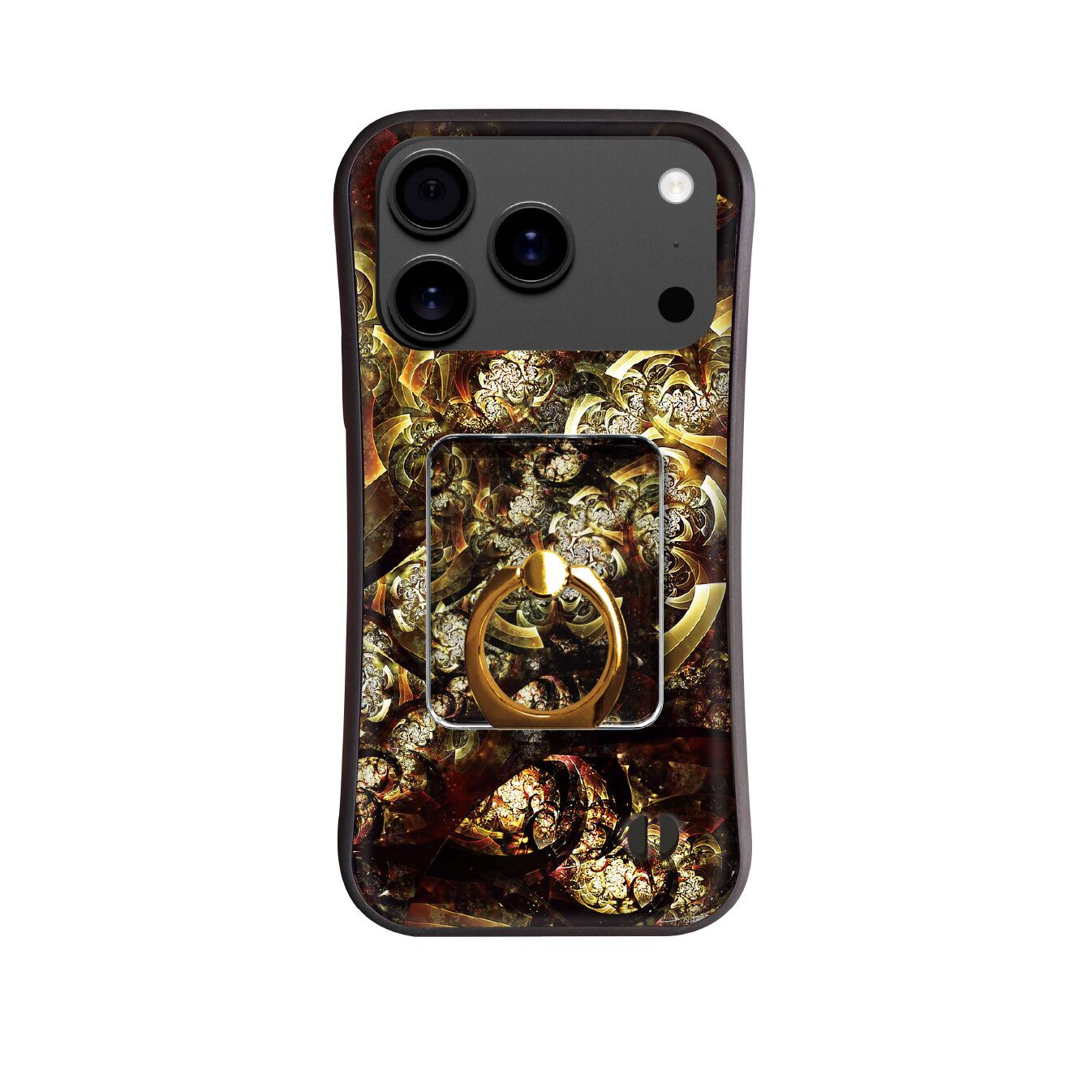 京都祇園祭の夜。猛暑の中、毎年開催される祇園祭の中でも、後祭における提灯や店の灯りは終わりゆく祭りの風情を感じさせる。祇園祭の美しさをイメージし、同じ黒系作品の志淵(しえん)をベースに再構築、解像度向上、レイアウト調整を施しました。スマホリングは両方ゴールド仕様。
