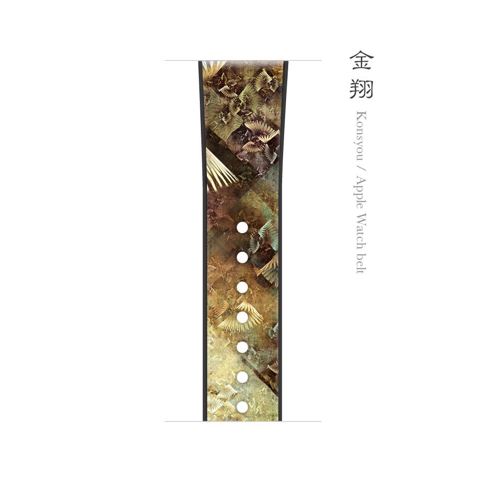 金翔の和風Apple Watch(アップルウォッチ)ベルトです。和柄のバンドがあなたのApple Watchを和装してくれます。ベルトのPUレザー素材は水や汚れに強く、使い込むほど味わいが増し、腕になじむのも魅力的。裏面はサラサラしたゴム加工で蒸れにくく汗に強い設計。留め具にあたるアダプターはメタリックに輝く高品質仕様。