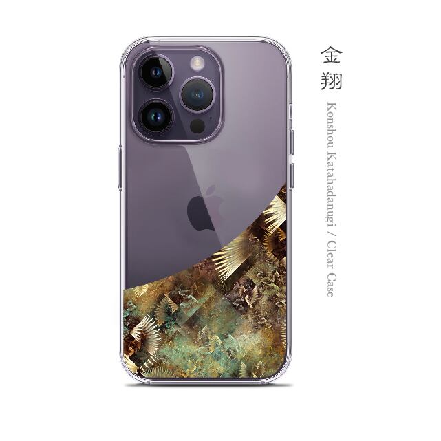クリアケースに金翔(こんしょう)の和柄を乗せた透明の和風iPhoneケースです。