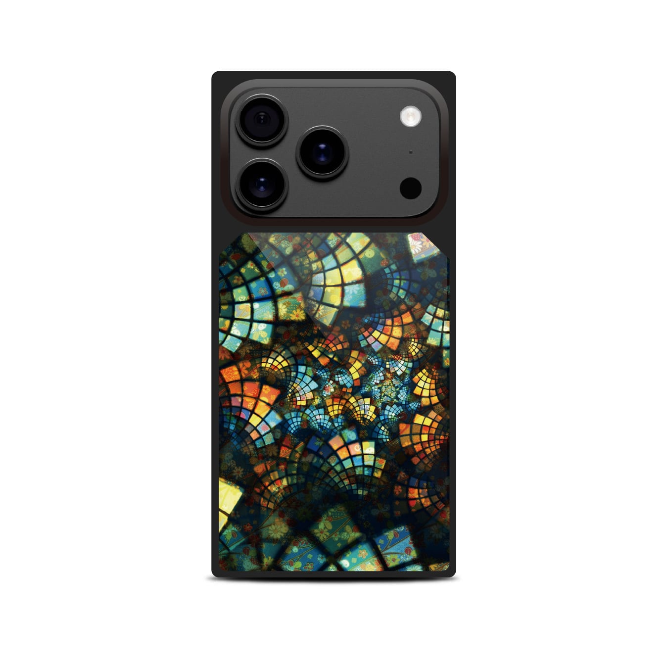大奥(おおおく)の四角型の和風強化ガラスiPhoneケースです。通常の強化ガラスケースから必要な部分だけを残し、新しく生まれた和の形をお楽しみください。