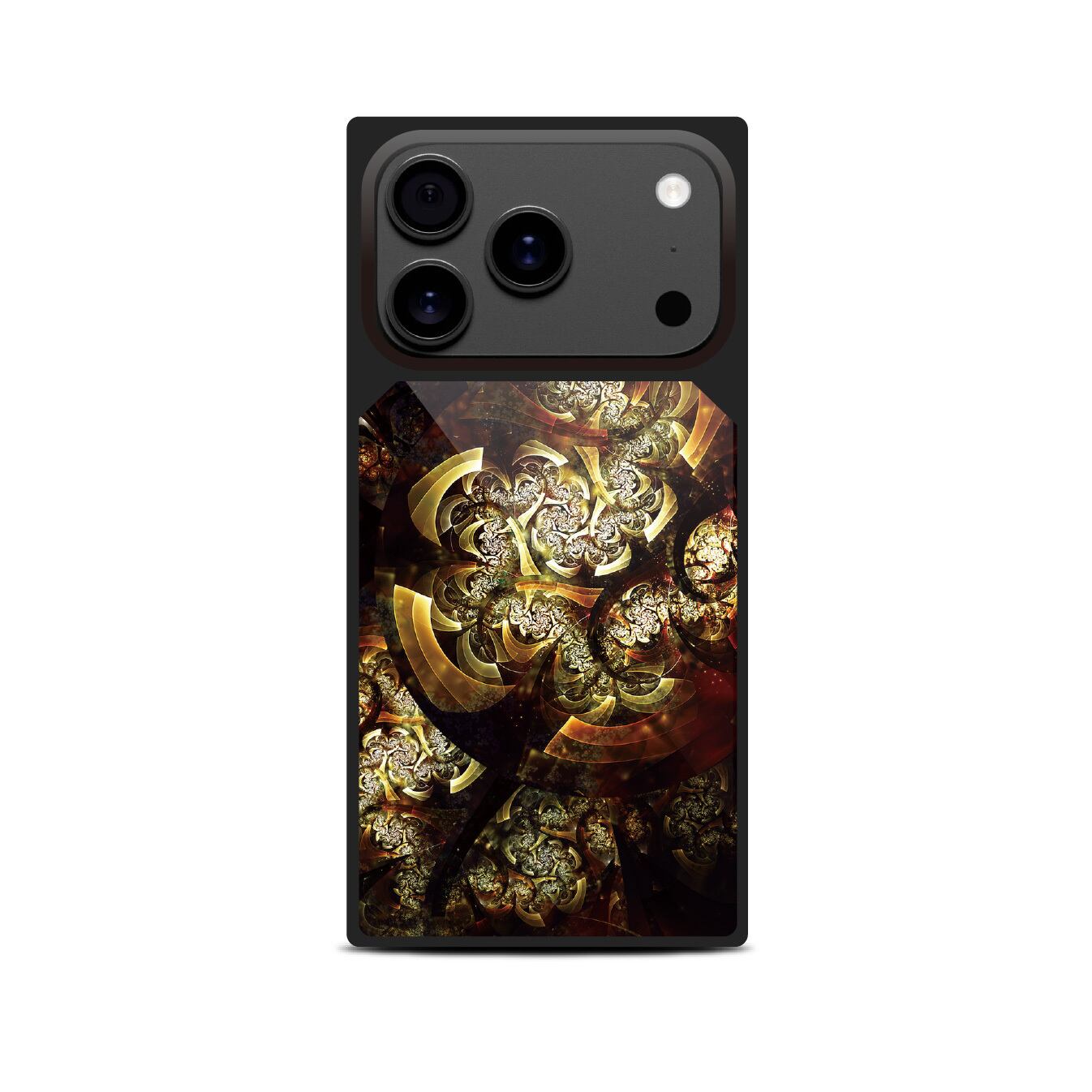 花札などでも見られる和の象徴である四角形を採用。片手でスッと取れる本体のサイズ感を邪魔する事なく、強化ガラスケースの必要な部分のみを研ぎ澄まし、シンプルな上品さを極めました。側面のTPUは全て黒で統一。内側には和を彷彿とさせる独自加工を施しており、上品さを引き立てます。本体に取り付ける前にも、拘り抜いたディテールをお楽しみください。