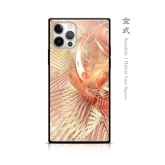 金式(こんしき)の四角型の和風強化ガラスiPhoneケースです。通常の強化ガラスケースから必要な部分だけを残し、新しく生まれた和の形をお楽しみください。
