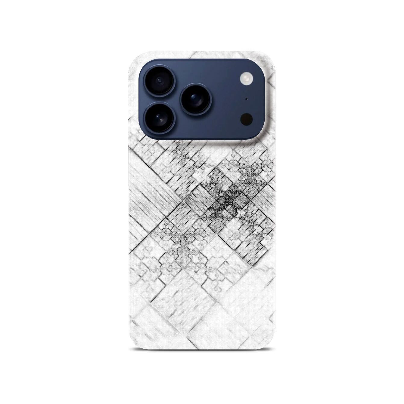 一枚の紙に描かれた浪漫のラフ画がそのままケースになったイメージで設計。全体を隈なくマット加工したポリカーボネート樹脂のボディは、無駄な光沢感を全て落とし、サラサラとした手触りが「手描き感」というコンセプトにマッチします。軽量でiPhone本体の薄さを損なわない。そして白の上品さを維持するための汚れにくさも特徴。
