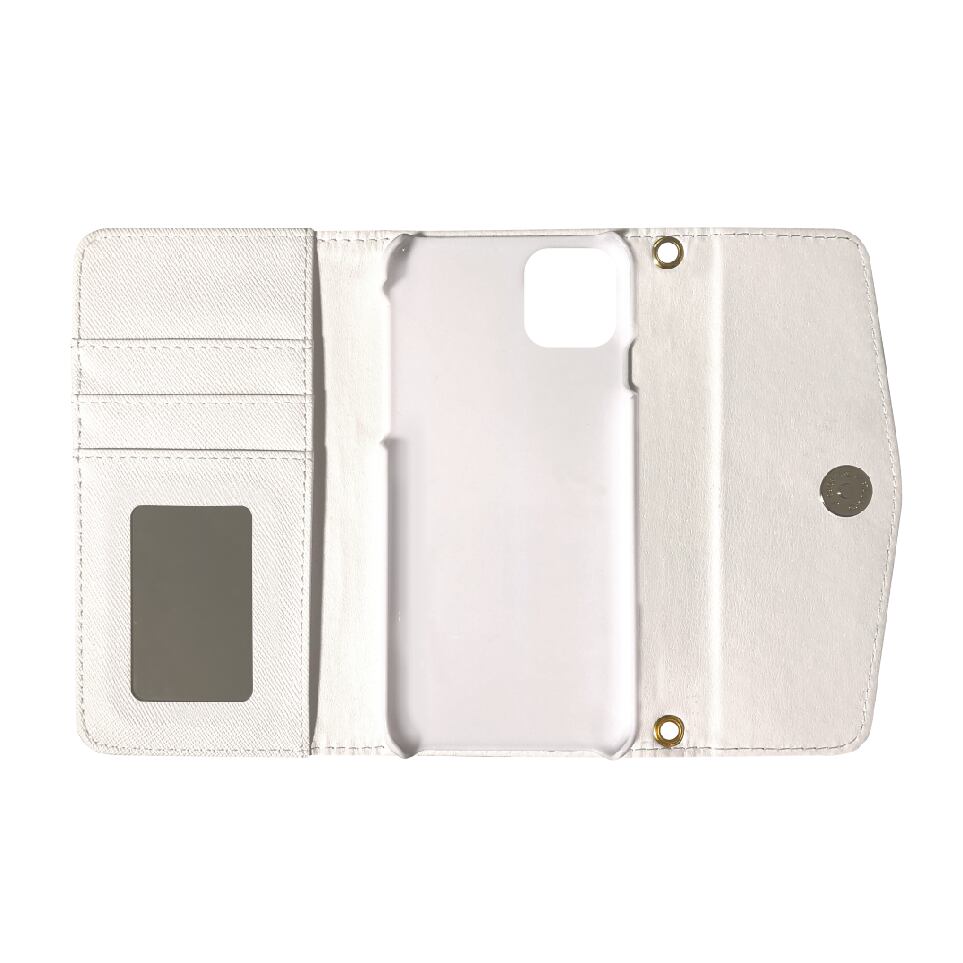 iPhone専用ケース/iPhoneカバー/スマホカバー/スマートフォンケース/ゴールド金具/磁石/カードポケット/カードスロット/ミラー/鏡/画面保護/女性に嬉しい/汚れにくい/頑丈/堅牢性/レディース/ウィメンズ/小鏡/身だしなみチェック用ミラー/化粧直し/スタンド機能/合成レザー/マグネットボタン/合皮/軽い/しっかりした生地/ストラップホール/ダブルストラップホール/ハンドストラップ付き/ストラップ付き/多機能/多重構造/複数素材/MagSafe充電器使用可(磁力吸着は非対応)/Qi規格・ワイヤレス充電器対応/ショルダー/スマホショルダー/首かけ/肩掛け/