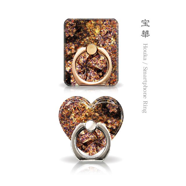 宝華(ほうか)モデルのオリジナル和柄スマホリングです。四角型・ハート型の2種類からお選びいただけます。リングに指を引っ掛ける事で本体落下防止の安全面を推したプロダクトです。