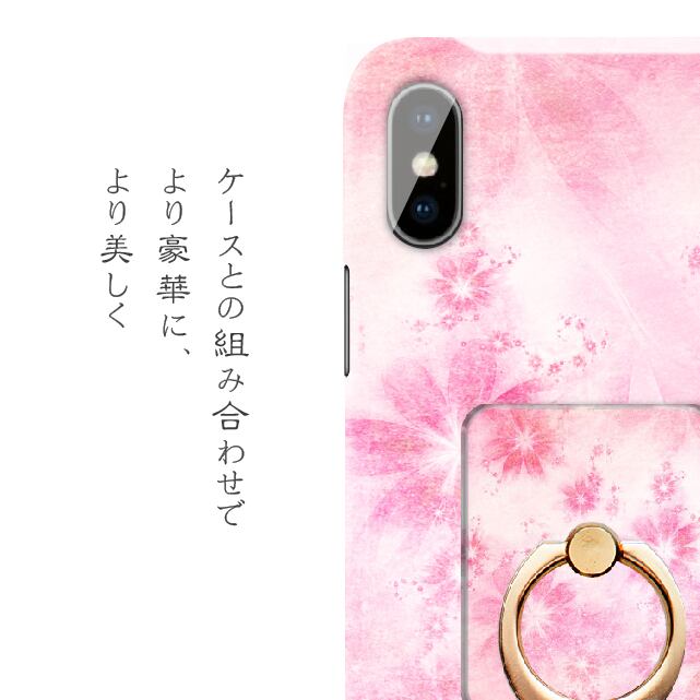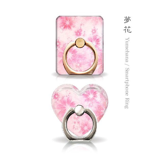 夢花(ゆめはな)モデルのオリジナル和柄スマホリングです。四角型・ハート型の2種類からお選びいただけます。リングに指を引っ掛ける事で本体落下防止の安全面を推したプロダクトです。