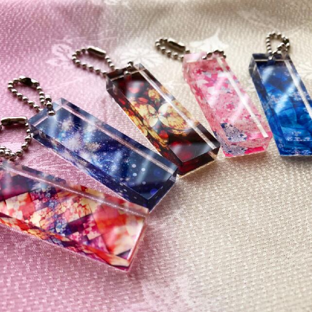 長方形/ギフト/ストラップ/キーチェーン/キーホルダー/小さい/コンパクト/縁起物/お守り/透明感/8mm厚/スマート/スタイリッシュ/アクリル/