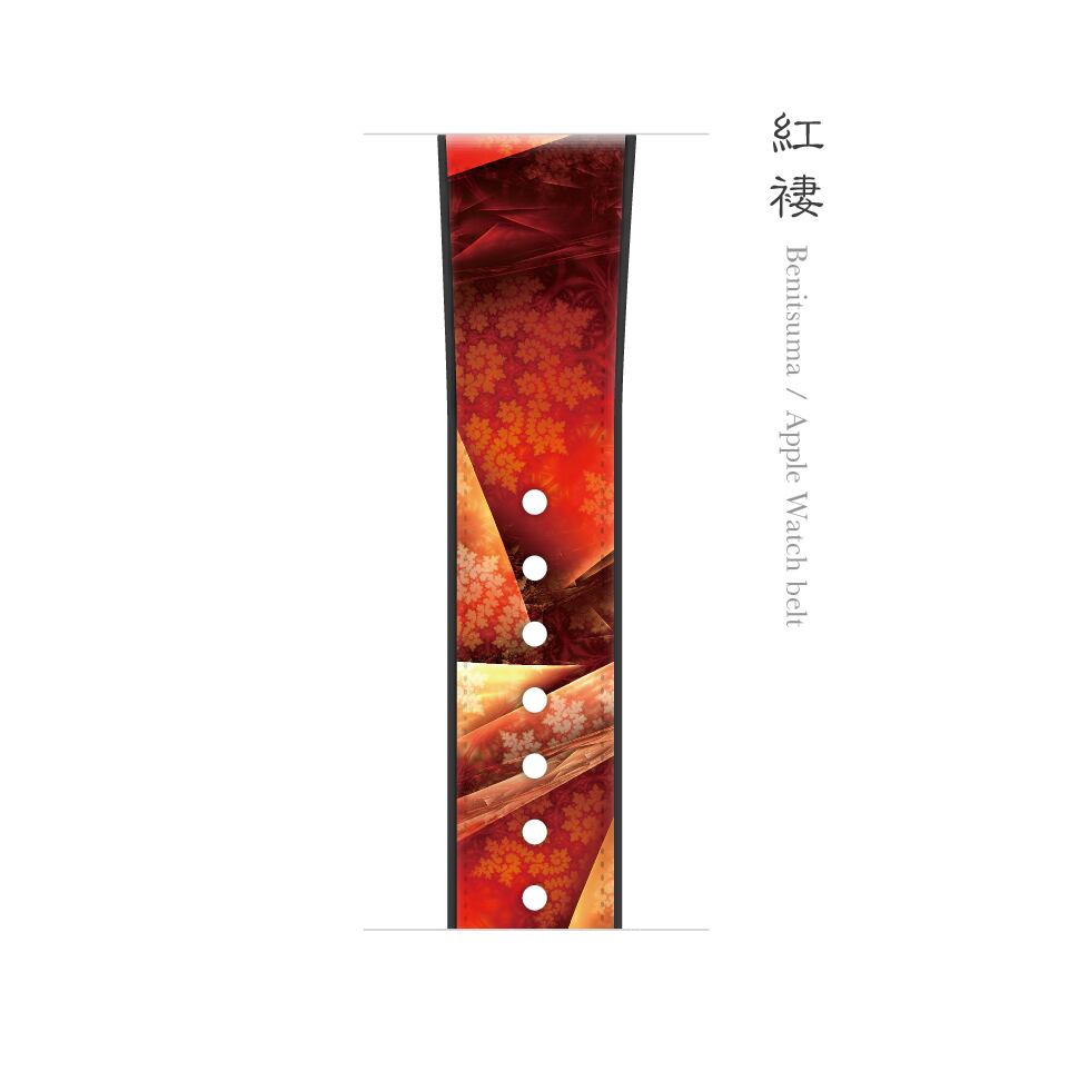 紅褄の和風Apple Watch(アップルウォッチ)ベルトです。和柄のバンドがあなたのApple Watchを和装してくれます。ベルトのPUレザー素材は水や汚れに強く、使い込むほど味わいが増し、腕になじむのも魅力的。裏面はサラサラしたゴム加工で蒸れにくく汗に強い設計。留め具にあたるアダプターはメタリックに輝く高品質仕様。