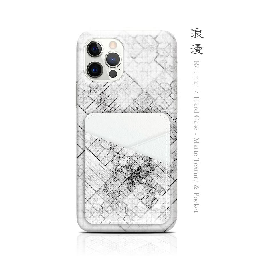 浪漫 - 和風 カードポケット付きマットiPhoneケース【Monochrome Kyoto】