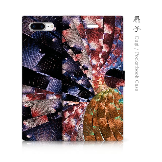 いくつもの扇子をデザインに集約させ、動きのあるグラフィカルな柄になりました。季節感がないのであらゆる季節で楽しめるデザインです。(iPhone以外の機種はご相談ください。)