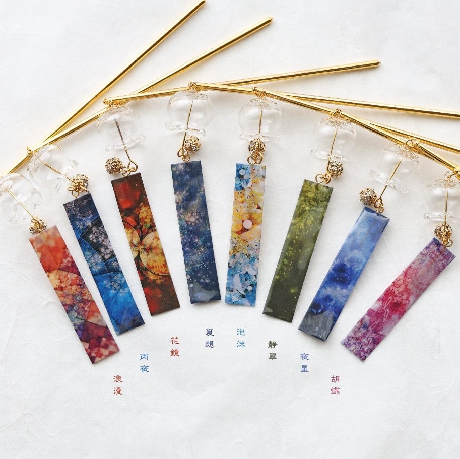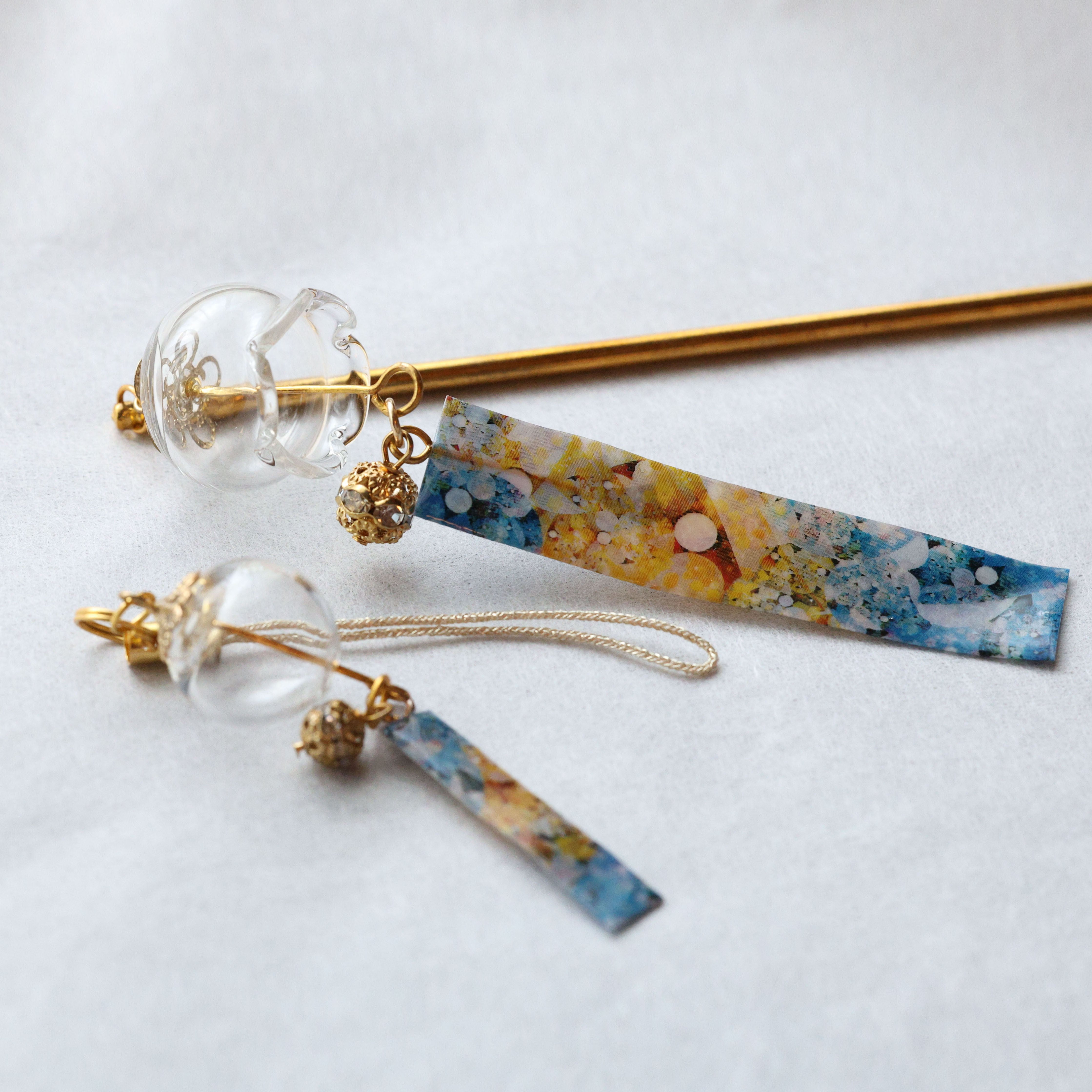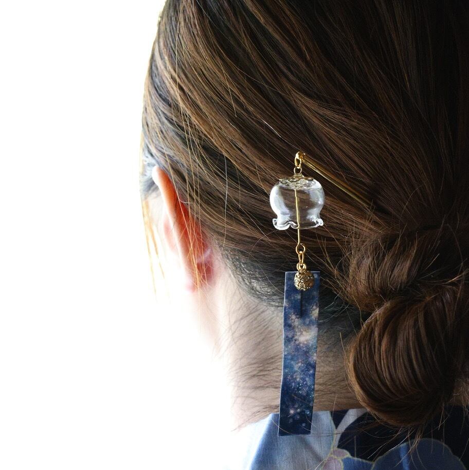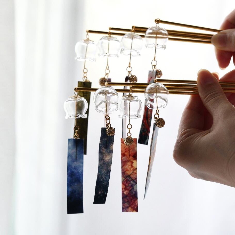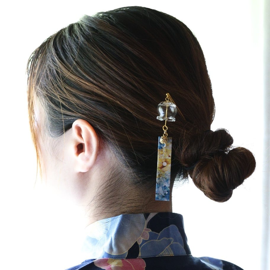 ガラス/舌/短冊/風鈴/夏/夏系/夏の風物詩/揺れる/髪飾り/ヘアアクセサリー/髪留め/ヘアピン/ビードロ/根付/カラフル/選べる/和風/和柄/日本/京都/風情/レトロ/モダン/和/カジュアル/ゆらゆら/かわいい/綺麗/手作り/手作業/七夕/七夕祭り/浴衣/樹脂/レジン/