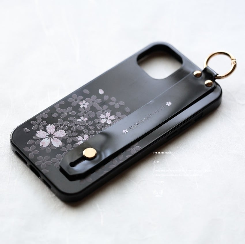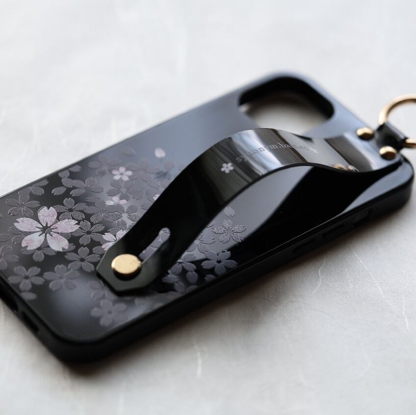 夜桜 - 和風 立体型 ハンドベルト付ソフトiPhoneケースです。iPhone14Plus用のケースとなります。