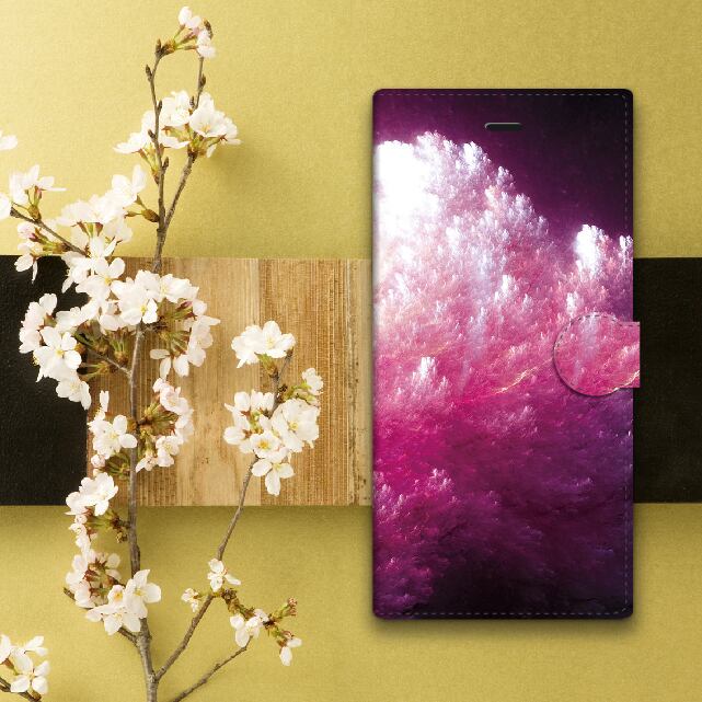和風/和/日本/フラクタル/CG/3D/デザイン/パーティー/ギフト/卒業式/成人式/初詣/スマホケース/iphoneケース/iPhone/スマートフォン/かっこいい/綺麗/和風/和柄/着物/振袖/袴/京都旅行/京都観光/白/ピンク/桜/春/波/大波/津波/桜の木/夜/夜桜/黒/