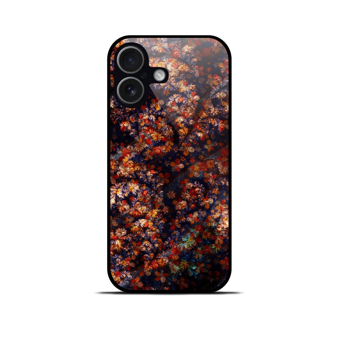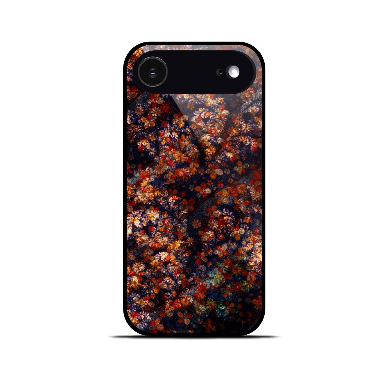 花魁の和風 角丸型 強化ガラスiPhoneケース。角丸型強化ガラスケースに相応しいアダルトでノスタルジックな和風作品。黒から繋ぎ、黒で終わるコントラストが、あなたのiPhoneを包み込みます(【LC】はカメラプロテクト標準装備)