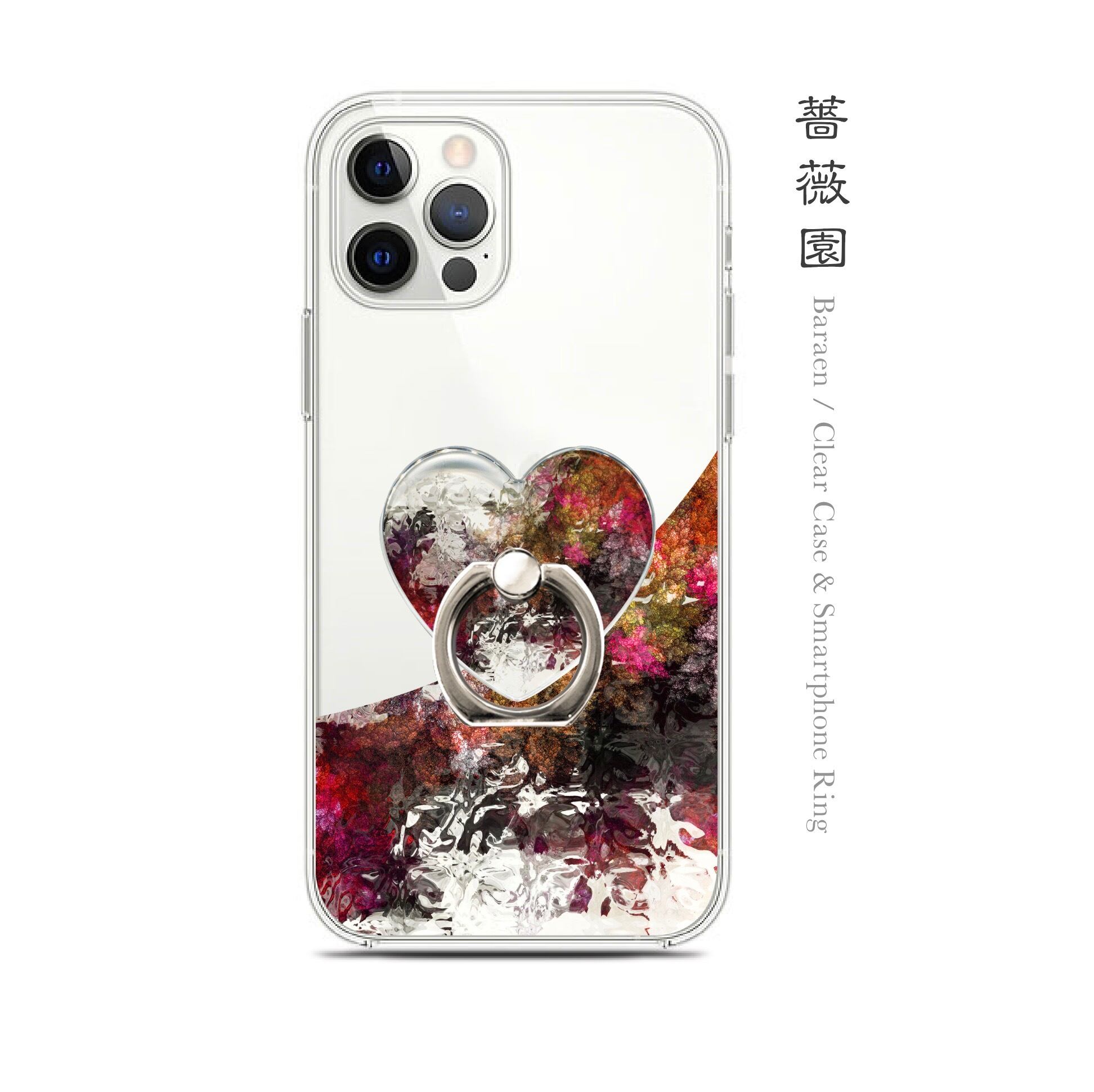 薔薇園 - 和風 iPhone クリアケース & ハート型スマホリング【オーダー品】